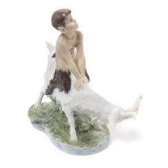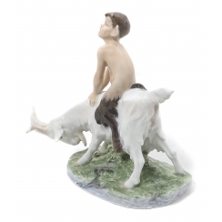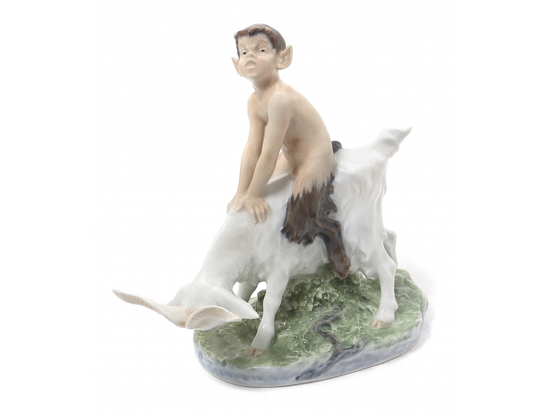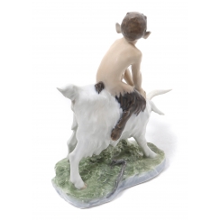 Фарфоровая фигура (статуэтка) "Фавн на козле ". Ручная подглазурная роспись.