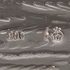 Length: 25 cm, width: 24.5 cm, maximum height: 5.5 cm. Weight: 353 grams of silver 800 fineness.