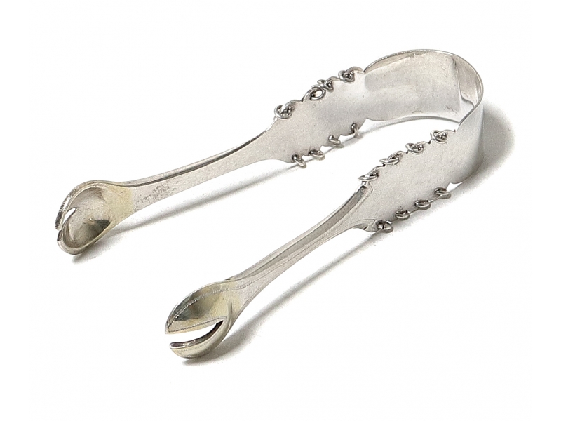 Длина: 9 см. Вес: 22 грамма серебра 830 пробы. ============================ Silver sugar tongs with rings.