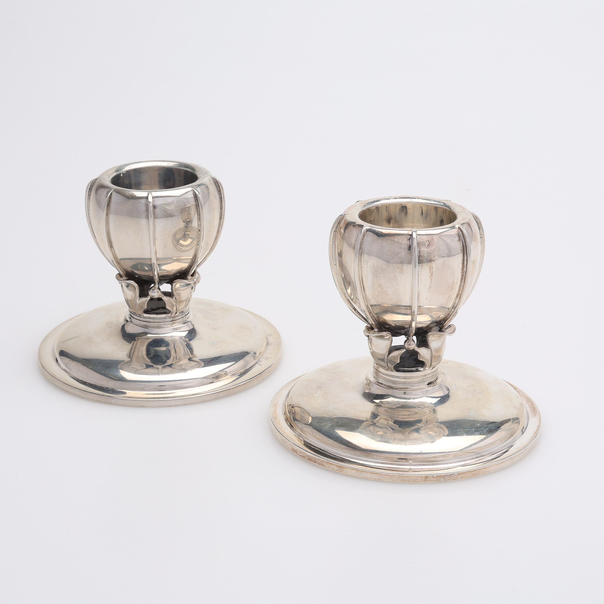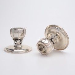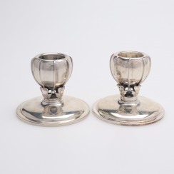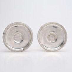 213815 - Цельносеребряные подсвечники, 2 шт, 407 гр, 830 пр, высота 8,5 см, дииаметр основания 11 см, диаметр свечи 3,3 см