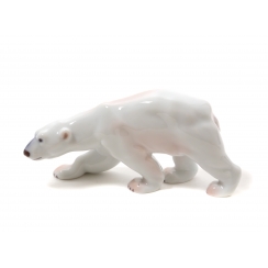 Фарфоровая фигура (статуэтка) "Идущий белый полярный медведь". Ручная подглазурная роспись.