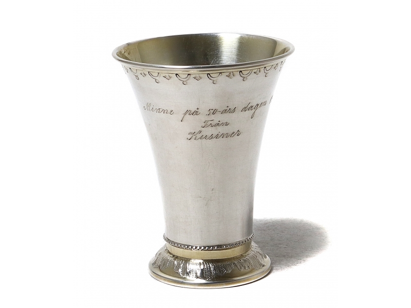 С гравировкой. ============================== Silver beaker in the form of a goblet.