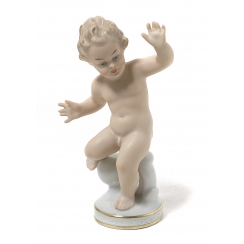 171808 - Фарфоровая фигура "Путти с мячом". WallendorfФарфоровая фигура (статуэтка) "Обнаженный мальчик (путти) с мячом". Ручная роспись.