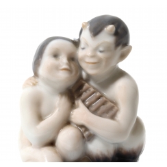 Статуэтка первого сорта. Без сколов, повреждений и без реставраций. ======================================= Porcelain figurine "Faun with small girl". Hand-painted underglaze.