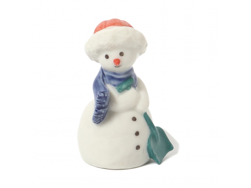 Фарфоровая фигура (статуэтка) "Снеговик - мама с лопатой". Ручная подглазурная роспись.