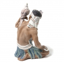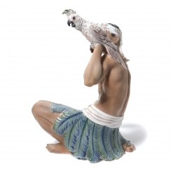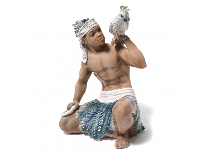 Фарфоровая фигура (статуэтка) "Суданский мужчина с какаду". Ручная подглазурная роспись.