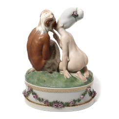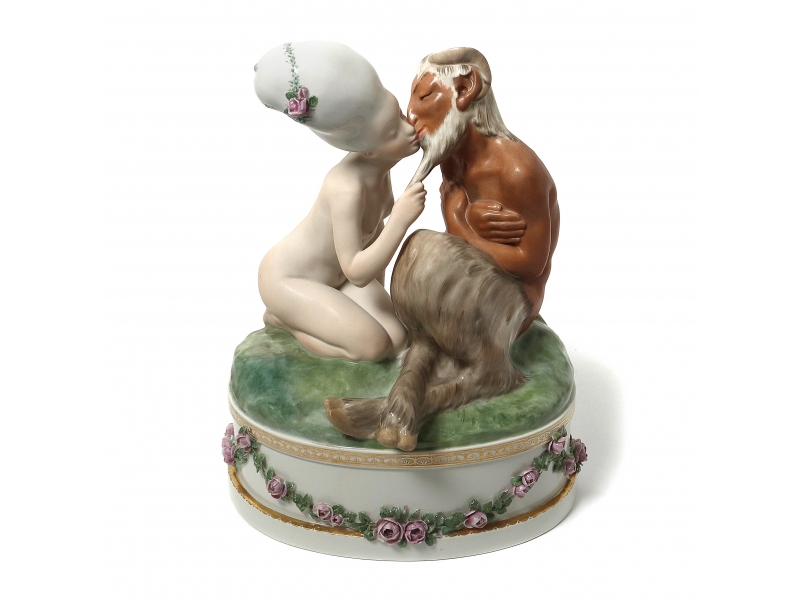 Статуэтка первого сорта. Без сколов, повреждений и без реставраций. ========================== Porcelain figurine "Nymph & Faun". Hand-painted overglaze.