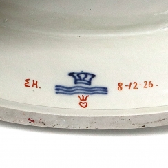 Дания, г. Копенгаген, Royal Copenhagen, 8 декабря 1926 год. Скульптор: Gerhard Henning (годы жизни: 1880-1967). Номер модели: 1119, производится с 1909 года. Инициалы художника, расписавшего статуэтку: EH . Клеймо производителя.