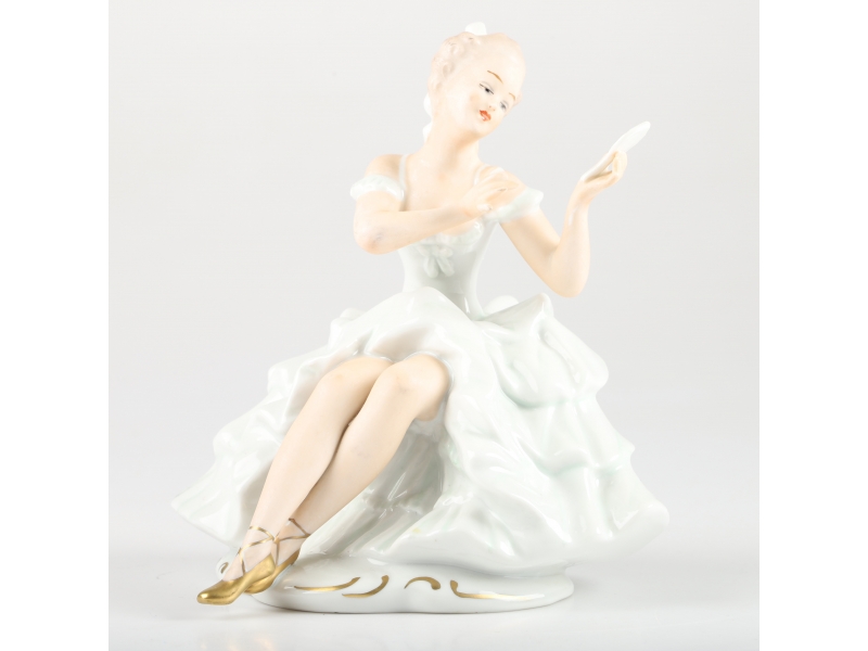 Фарфоровая фигура (статуэтка) "Балерина с зеркалом". Ручная роспись.