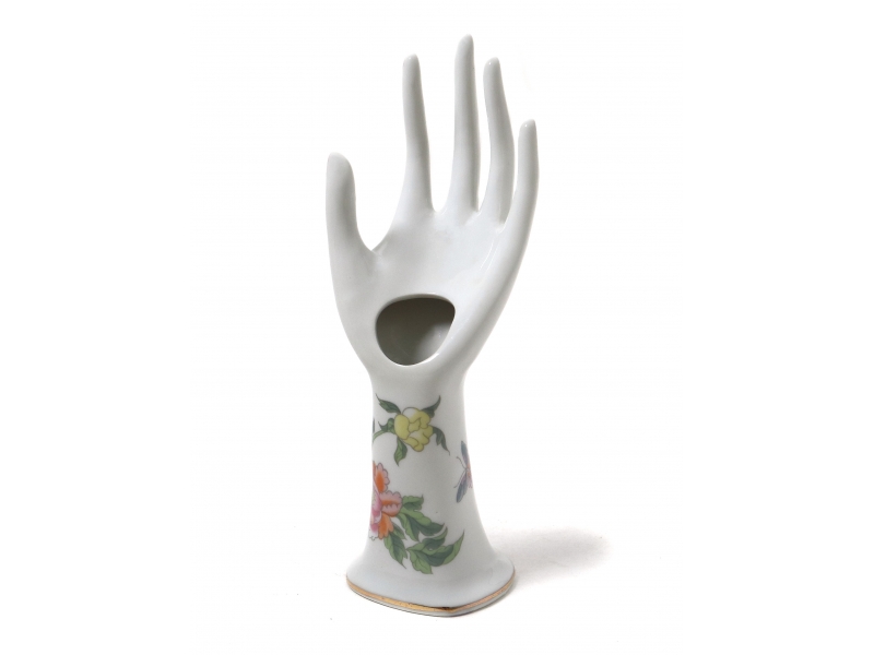 Фарфоровая подставка в виде руки, декорированная изображением цветов.