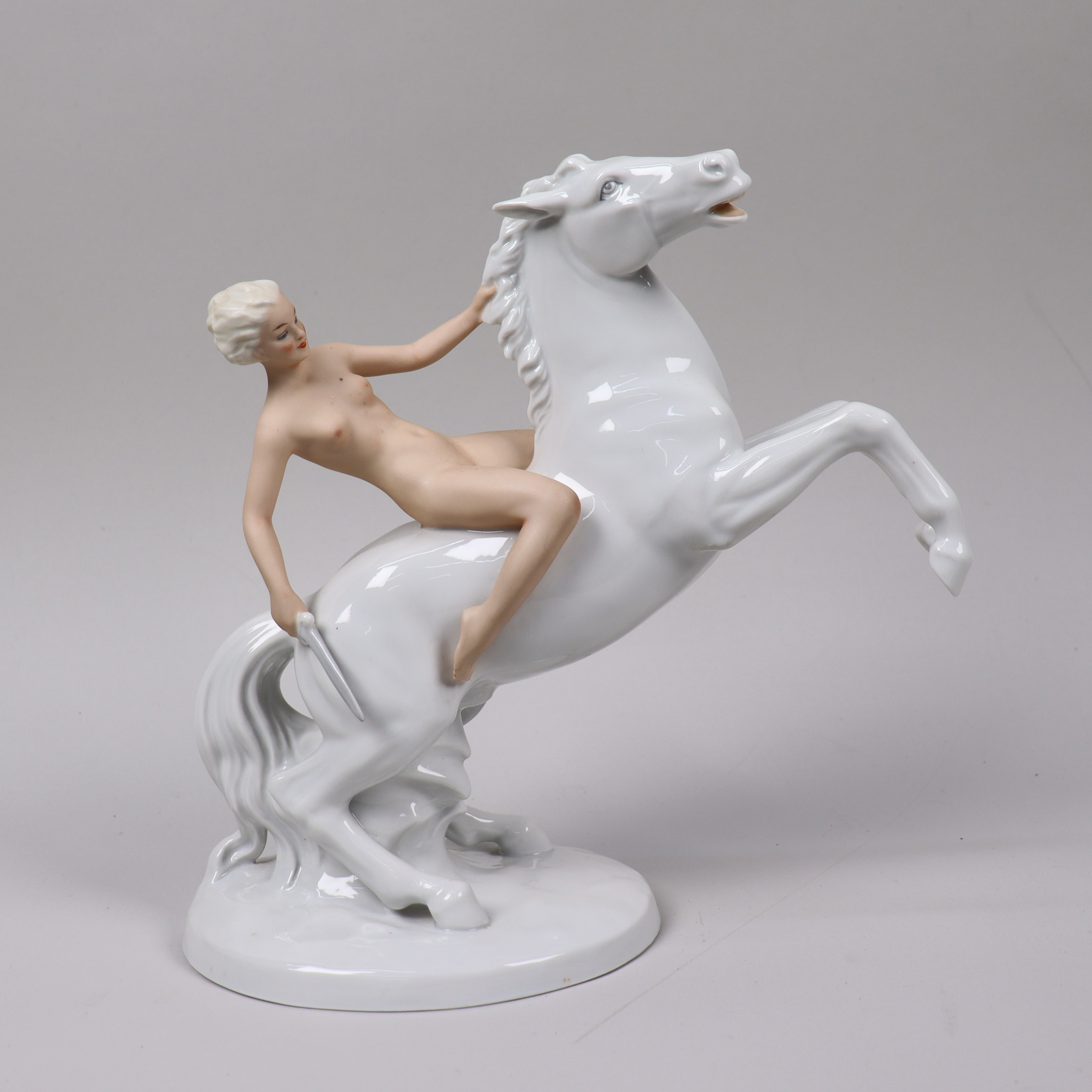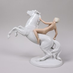 Обнаженная девушка с мечом на взыбленном коне, высота 23,4 см, основание 14,8 х 11,8 см, WLD_1066M
