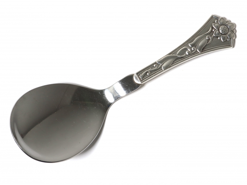 Ложка с серебряной ручкой и стальным черпаком для сервировки горячих или не совместимых с серебром блюд (например, салатов с яйцом, солений).