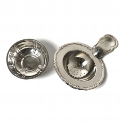 Teapot height (to the top of the lid): 18 cm. Volume: 1200 ml. Coffee pot height (to the top of the lid): 26 cm. Volume: 1200 ml. Sugar bowl height (to the top of the lid): 13 cm, rim height: 8.8 cm, bowl top dimensions: 10 x 7 cm. Creamer height (to the top of the rim): 11.7 cm. Volume: 300 ml. Strainer length: 13.8 cm, diameter: 9.2 cm, stand diameter: 7 cm, stand top diameter: 7 cm Maximum tray dimensions: length 47.5 cm, width 38 cm, height 2 cm; Bottom dimensions: 40 x 30 cm.