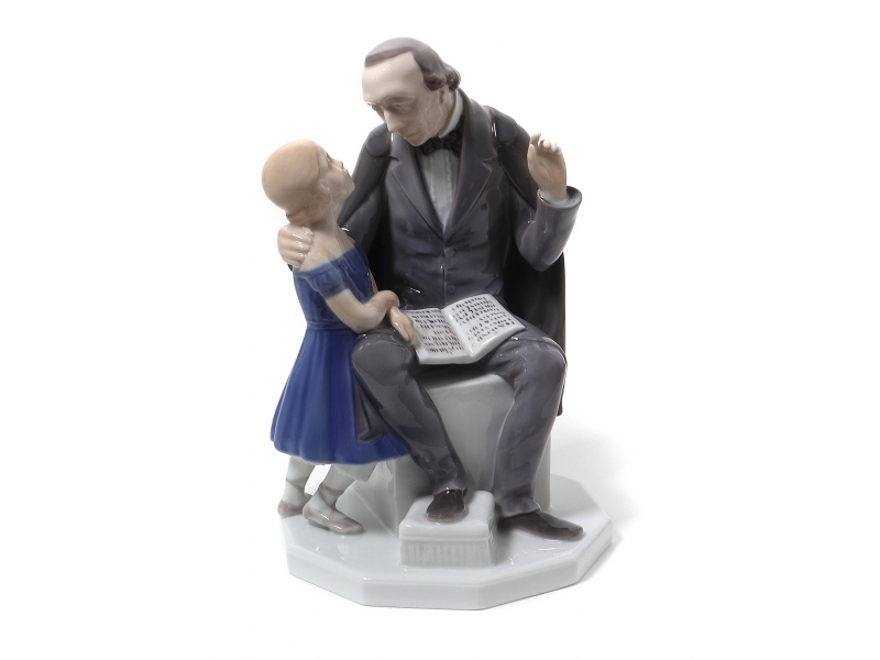 Эта же фигура выпускалась начиная с 1925 года, фабрикой Royal Copenhagen с номером модели 445. ==================================== Porcelain figurine "Writer Hans Christian Andersen with a girl". Hand-painted underglaze.