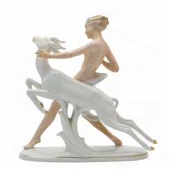 Фарфоровая фигура (статуэтка) "Обнаженная девушка с газелью". Ручная роспись.