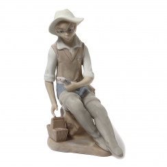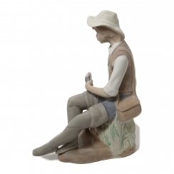 Фарфоровая фигура (статуэтка) "Рыбак с уловом". Ручная подглазурная роспись.