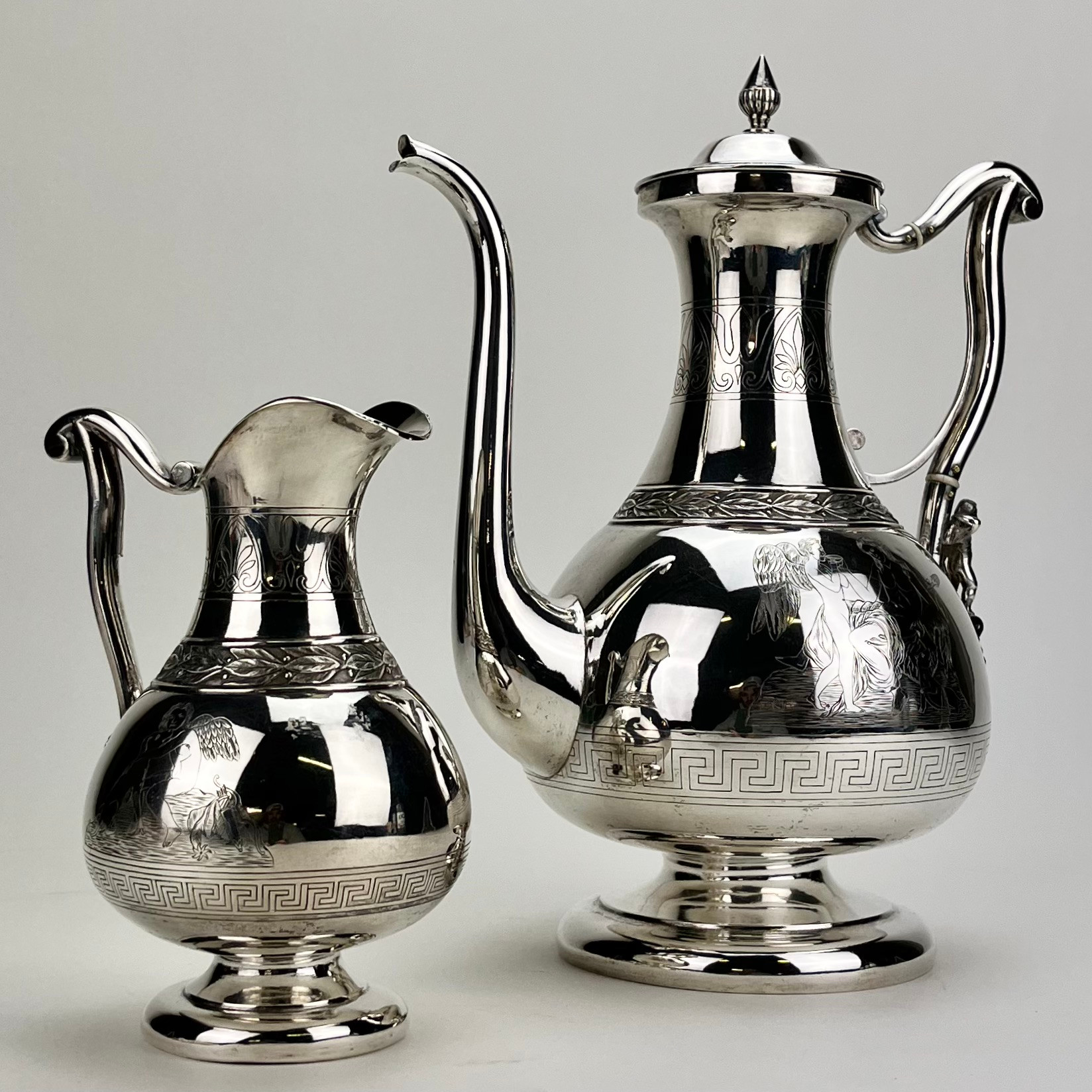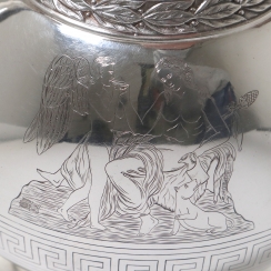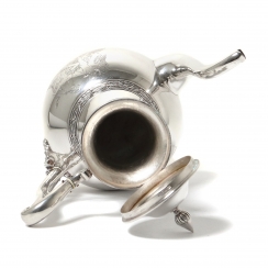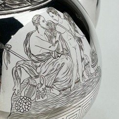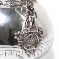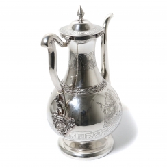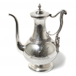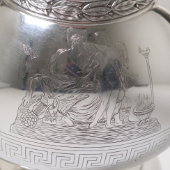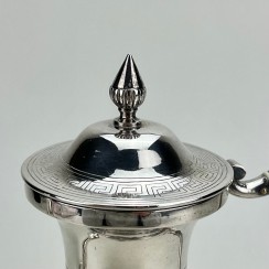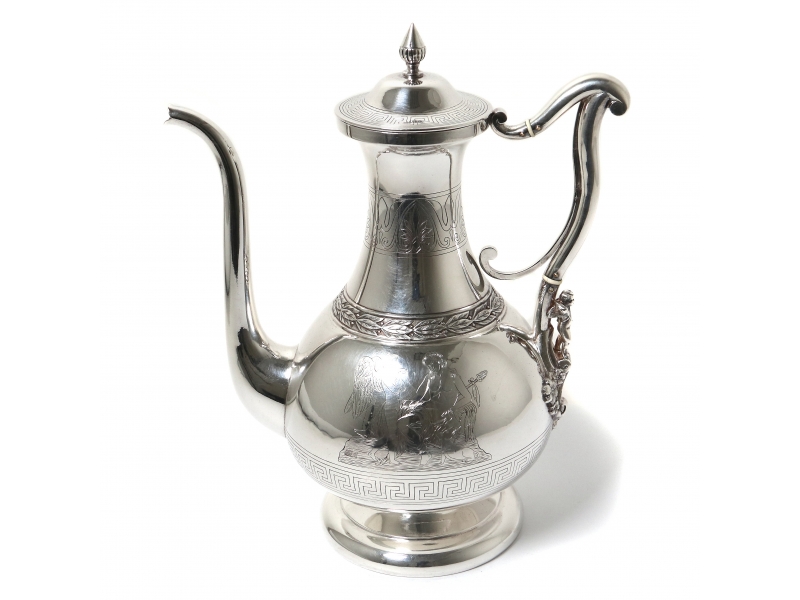 ![]() 267862 - Небольшой серебряный кувшин. Швеция, 1872 годНебольшой серебряный кувшин или молочник в античном стиле,декорированный растительным орнаментом, изображением ангелов и меандровым узором (греческий ключ). Швеция, г. Стокгольм, 1872 год, мастерская Alfred Ambrosius (годы работы: 1851, 1858-1897). Высота по носик: 16,2 см. Объем: 450 мл. Вес: 191 грамм серебра 830 пробы. ========================== Small silver pitcher (jug) or creamer, in antique style, decorated with plant ornaments and images of angels and a meander pattern (Greek key). Sweden, Stockholm, year 1872, workshop of Alfred Ambrosius (years of work: 1851, 1858-1897). Height of the spout: 16.2 cm. Volume: 450 ml. Weight: 191 grams of silver 830 fineness. Люди Ангел ![]() 281358 - Серебряный кофейник в античном стиле, |