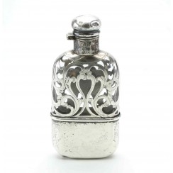 217134 - Стеклянная фляжка в обрамлении из серебра 925 пробы. Длина 12,5 см, ширина 6 см, толщина 2,3 см