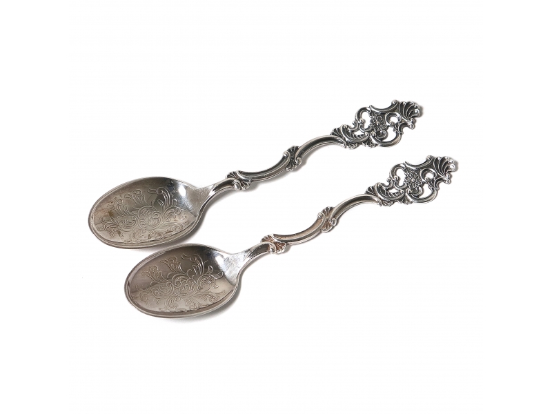 Длина: 10,2 см. Общий вес: 16 граммов серебра 830 пробы. ============================ Silver coffee spoons, 2 pcs. Pattern "Grandmother (Oldemor)".
