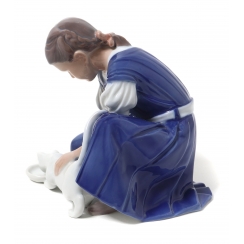 Фигура произведена после объединения фабрик Royal Copenhagen и Bing & Grondahl (1985-1989). ============================= Porcelain figurine "Girl feeding cat". Hand-painted underglaze. "Only one drop" by Pope's catalog. Denmark, Copenhagen, Royal Copenhagen, the 1985-1991. Sculptor: Ingebord Plockroos Irminger (years of life: 1872-1962). Model: 1745. The initials of the artist painted this figurine: KL .