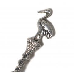 Серебряная сервировочная ложка с фигурой цапли на конце ручки.