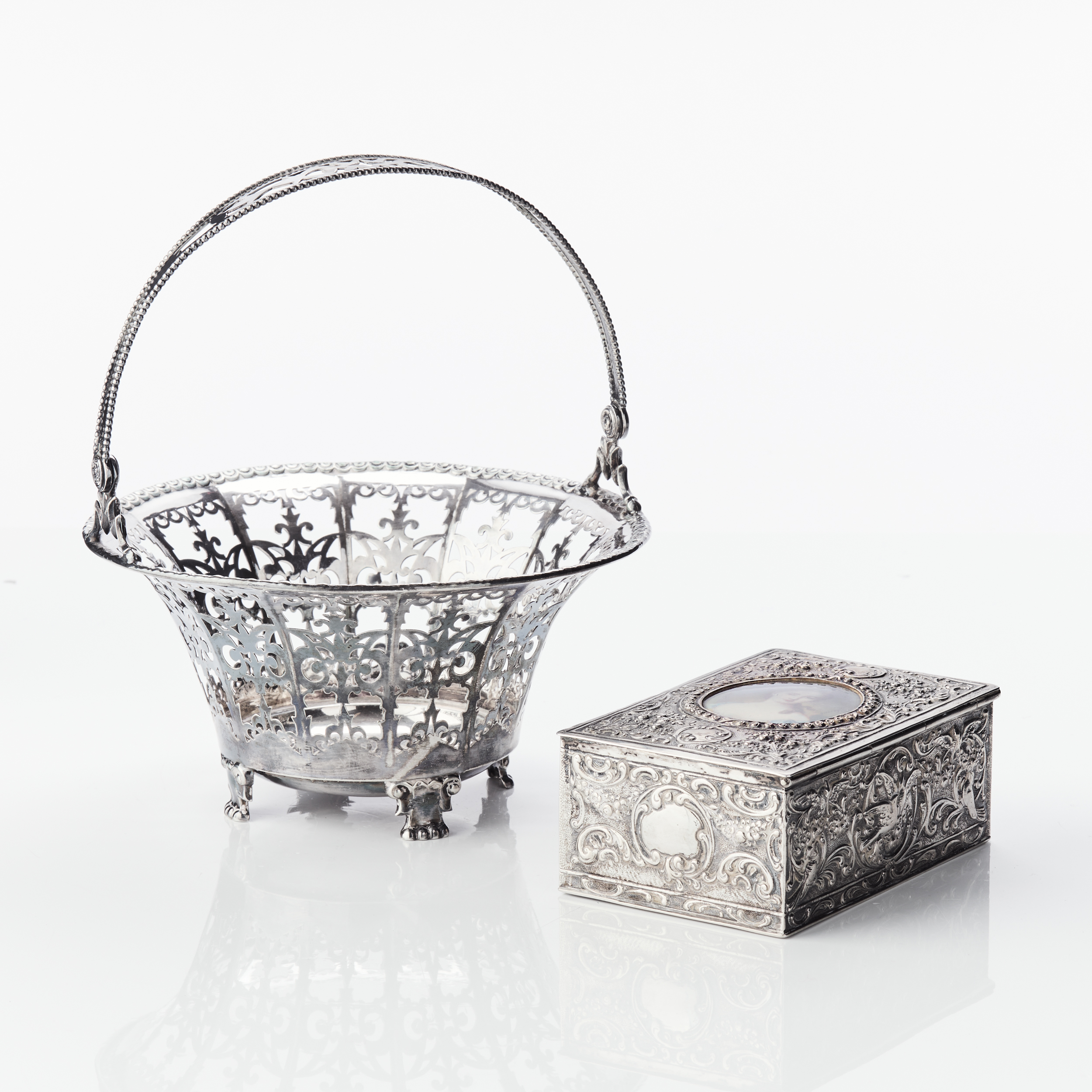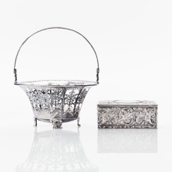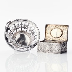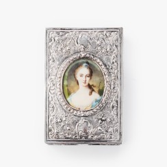 214881 - Cеребряная шкатулка. Европа, начало 20 века.Cеребряная шкатулка, декорирована цветочным узором, птицами и вставленным портретом дамы на крышке.