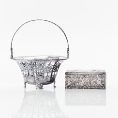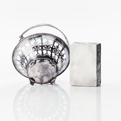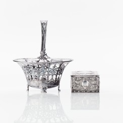 210970 - Серебряная прорезная ваза с ручкой. ГерманияСеребряная прорезная ваза-корзинка с перекидной ручкой.