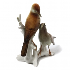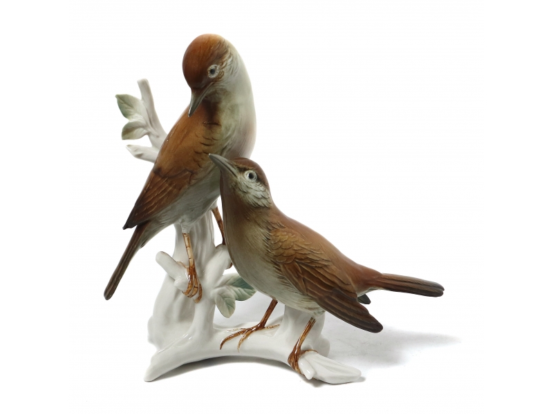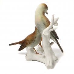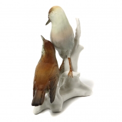Фарфоровая фигура (статуэтка) "Соловьи на ветке". Ручная подглазурная роспись.