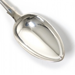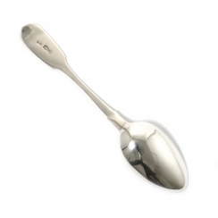 Пробирные российские клейма 19 века, где: "ИК" - инициалы пробирного мастера Ивана Ефимовича Константинова (годы работы: 1875-1882); цифра "1875" указывает год клеймения; цифра "84" удостоверяет, что изделие выполнено из серебра 84 золотниковой пробы; "Георгий Победоносец" - клеймо города Москвы. ============================ Silver dining spoon.