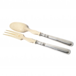 292668 - Сервировочные ложка и вилка. Кость, серебро. Россия, 1880-е - 1899 гг.Сервировочные ложка и вилка. Кость, серебро 84 пробы.