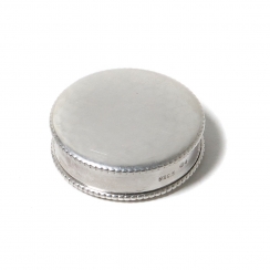 Серебряная таблетница для порошков, верхняя крышка поворачивается и открывает отверстие расположенное на боку.