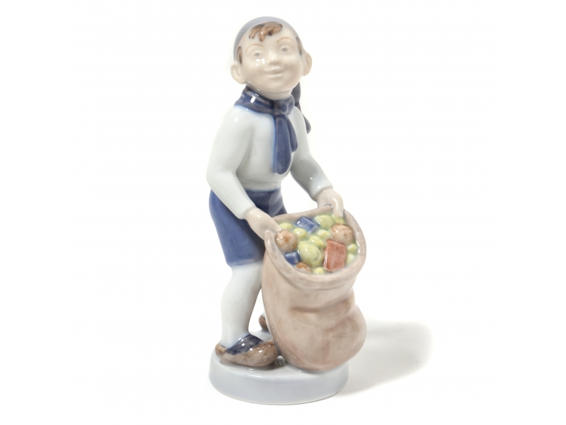 Фарфоровая фигура из серии Месяцы года "Декабрь - мальчик с мешком". Ручная подглазурная роспись.