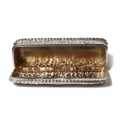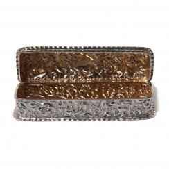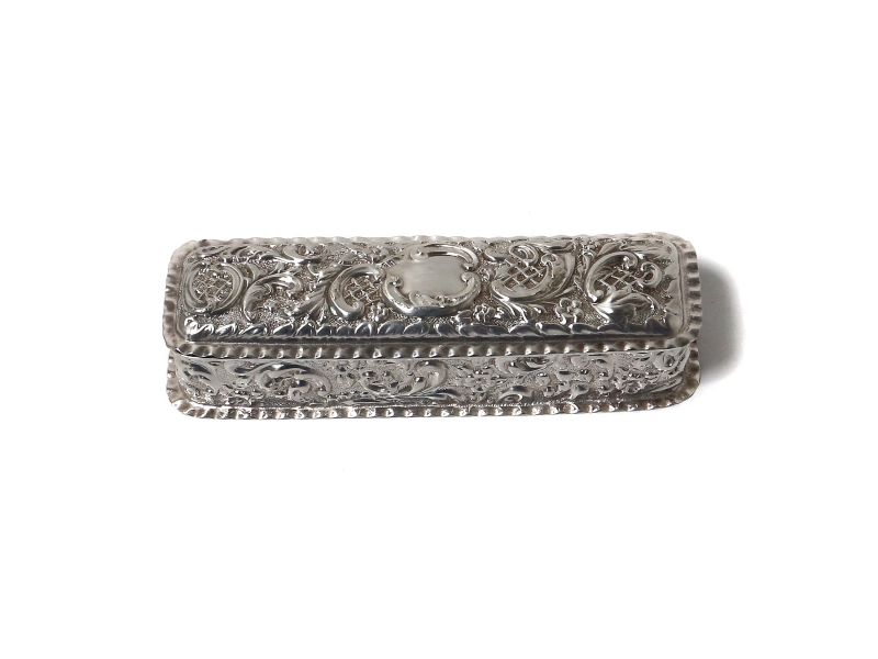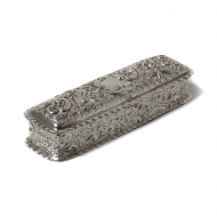 Серебряная шкатулка, декорированная рельефным растительным узором.