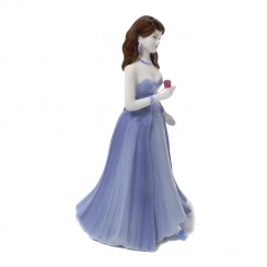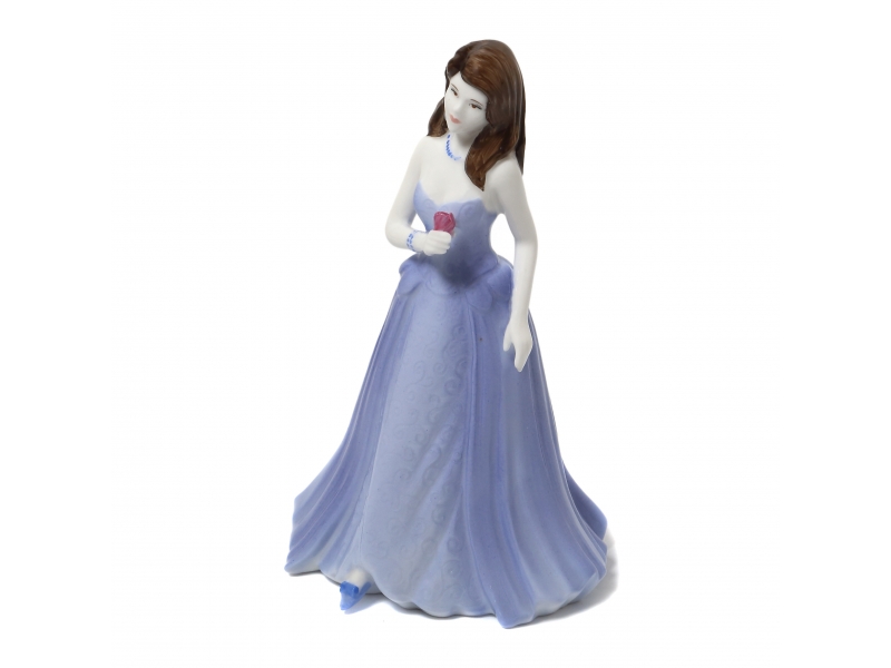 220235 - Девушка в голубом платьес розой в правой руке, высота 13 см, длина 8 см, ширина 7,5 см, Англия, Coalport