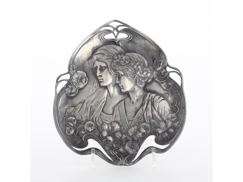 Высота: 22 х 24 х 2 см. ========================== Silver plated bowl (dish), decorated with the image of a womans, modern. Germany, workshop Wurttembergische Metallwarenfabrik (WMF), the 1895 - 1903.