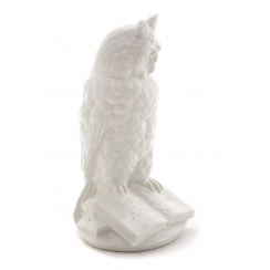 Фарфоровая фигура (статуэтка) "Филин, сидящий на книгах". Нерасписанный белый фарфор. Белая глазурь.