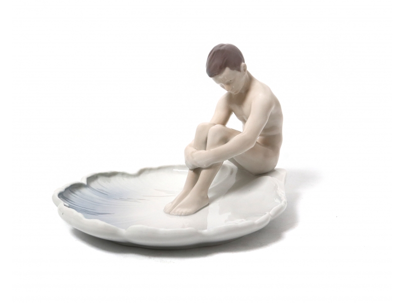 Ваза первого сорта. Без сколов, повреждений и без реставраций. ====================================== Porcelain vase (dish, tray) "Boy - naked on tray". Hand-painted underglaze.