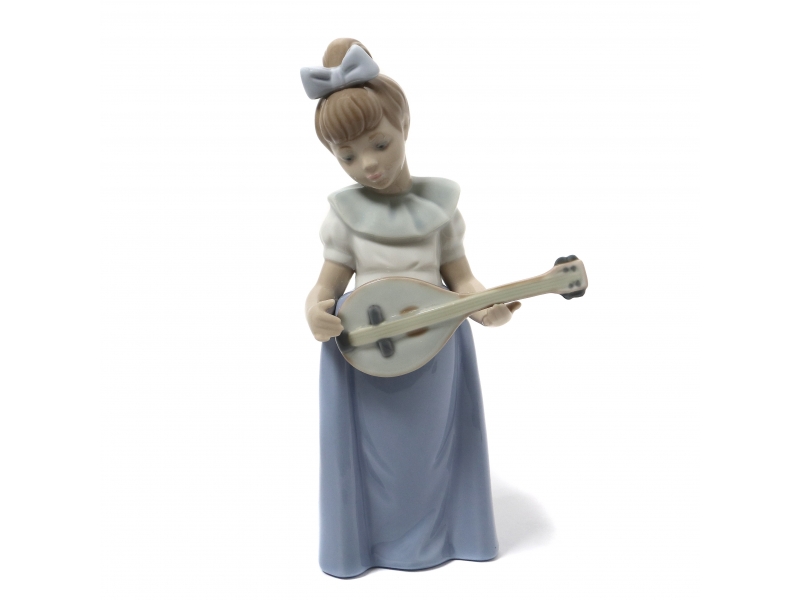 Фарфоровая фигура (статуэтка) "Девочка с мандолиной". Ручная подглазурная роспись.
