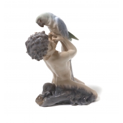 Фарфоровая фигура (статуэтка) "Фавн с попугаем". Ручная подглазурная роспись.