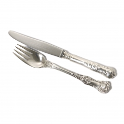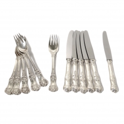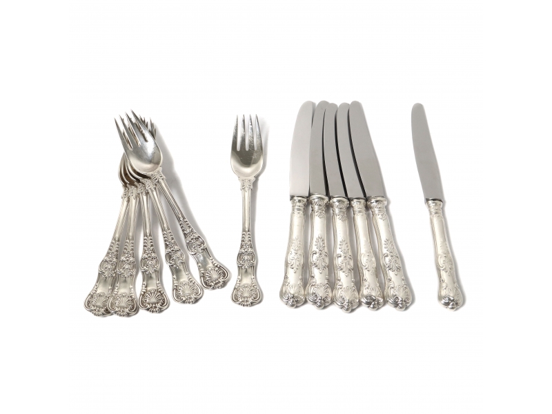 Серебряные обеденные ложки и вилки на 6 персон, 12 предметов. Дизайн "English King", разработан Чарльзом Гросжеаном. Патент 1885 года.