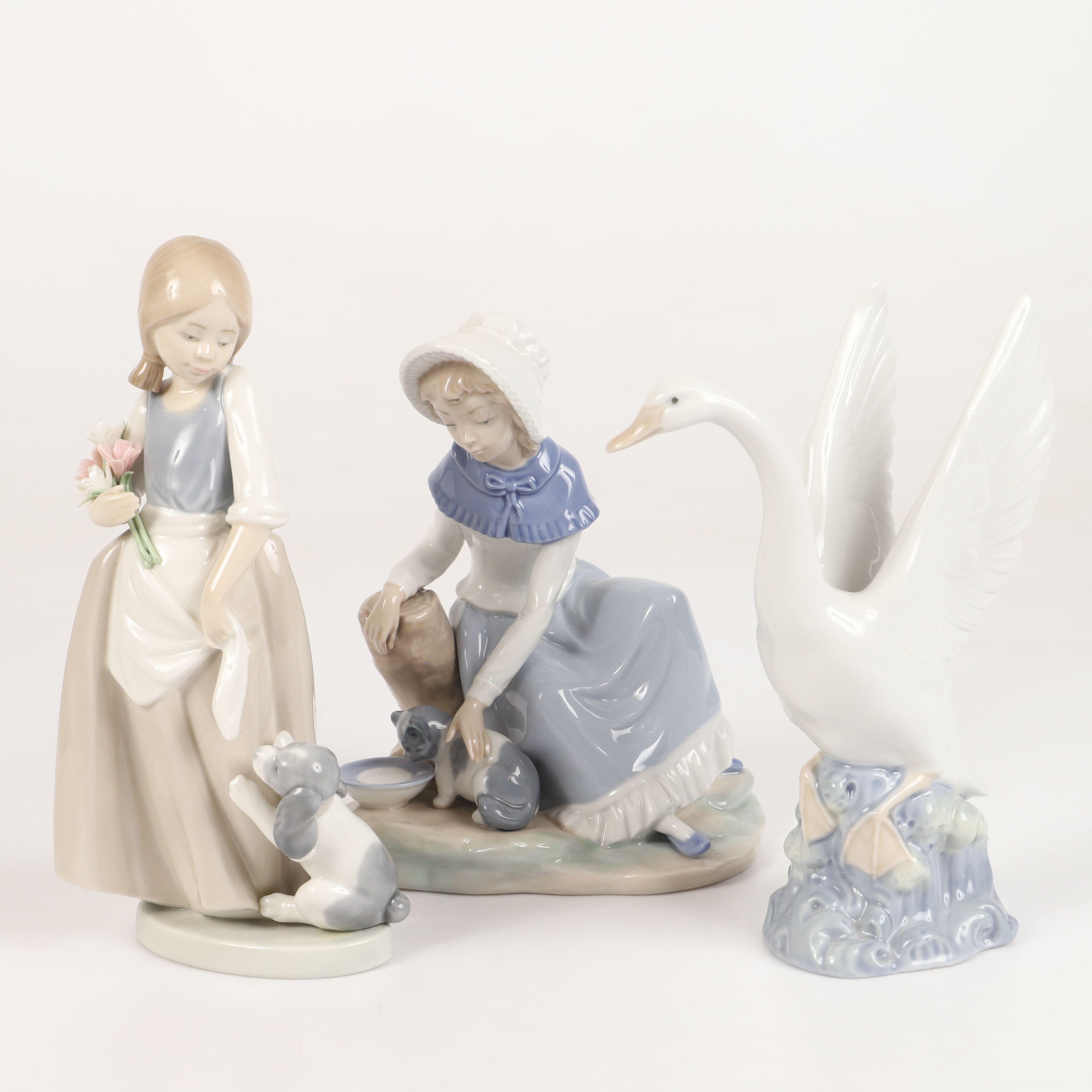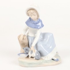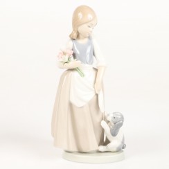216931 - Фарфоровая фигура "Девочка с букетом и щенок" NAO by LladroФарфоровая фигура (статуэтка) "Девочка с букетом и щенок" (А как насчет меня?). Ручная подглазурная роспись.