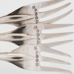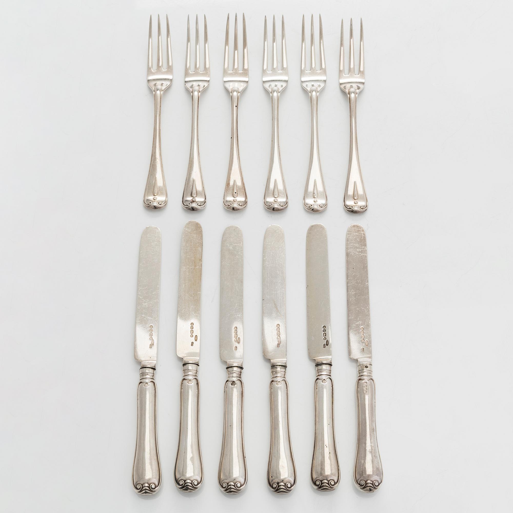 Набор серебряных вилок и цельносеребряных ножей на 6 персон, 12 предметов, Англия, 19 век, общий вес 772 гр, 925 пр