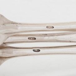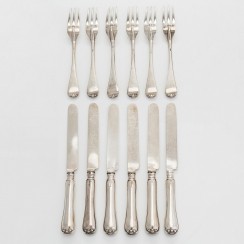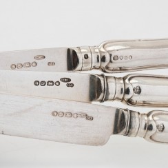 223527 - Набор серебряных вилок и цельносеребряных ножей на 6 персон, 12 предметов, Англия, 19 век, общий вес 772 гр, 925 пр