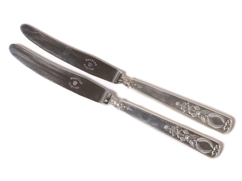 Небольшие обеденные ножи с серебряными ручками и стальными лезвиями, 2 шт.