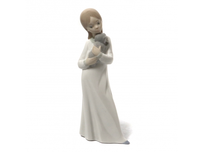 Приклеен правый мысок. ======================== Porcelain figurine "Girl with puppy". Hand-painted underglaze.