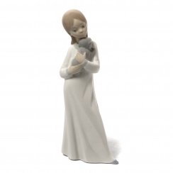 Фарфоровая фигура (статуэтка) "Девочка со щенком". Ручная подглазурная роспись.