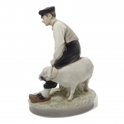Статуэтка второго сорта. Без сколов, повреждений и без реставраций. ============================== Porcelain figurine "Farmer with sheep". Hand-painted underglaze.
