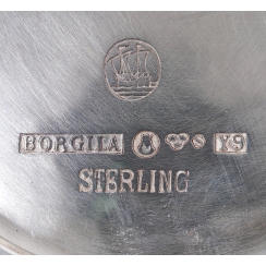 Высота: 3,7 см, диаметр верха: 18,7 см. Вес: 397 граммов серебра 925 пробы. =============================== Sterling silver bowl (dish).