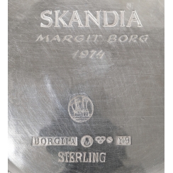 Height: 3.7 cm, diameter of the top: 18.7 cm. Weight: 397 grams of sterling silver 925 fineness.