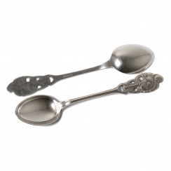 Длина: 10,8 см. Общий вес: 52 грамма серебра 830 пробы. ========================= Silver coffee spoons with a picture of a squirrel with a nut, 5 pcs.